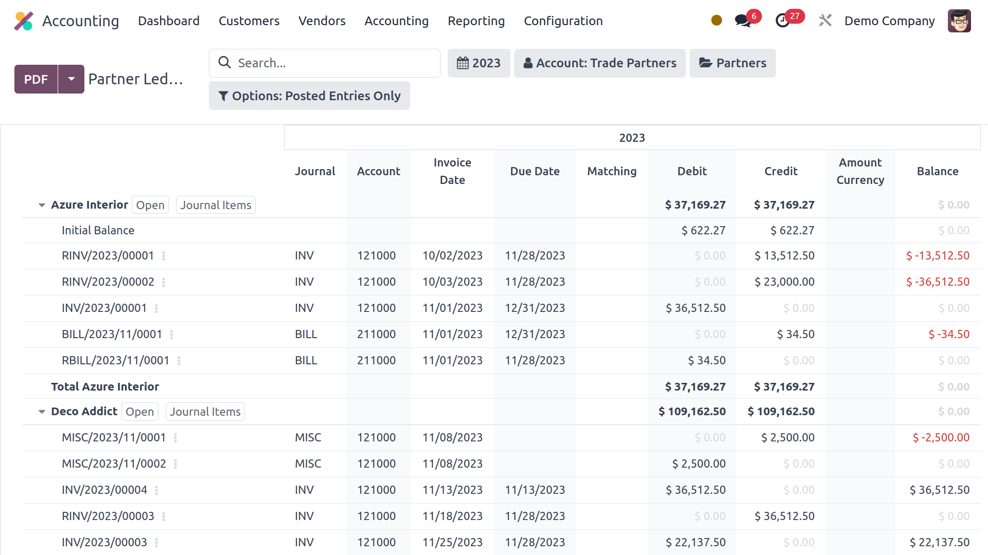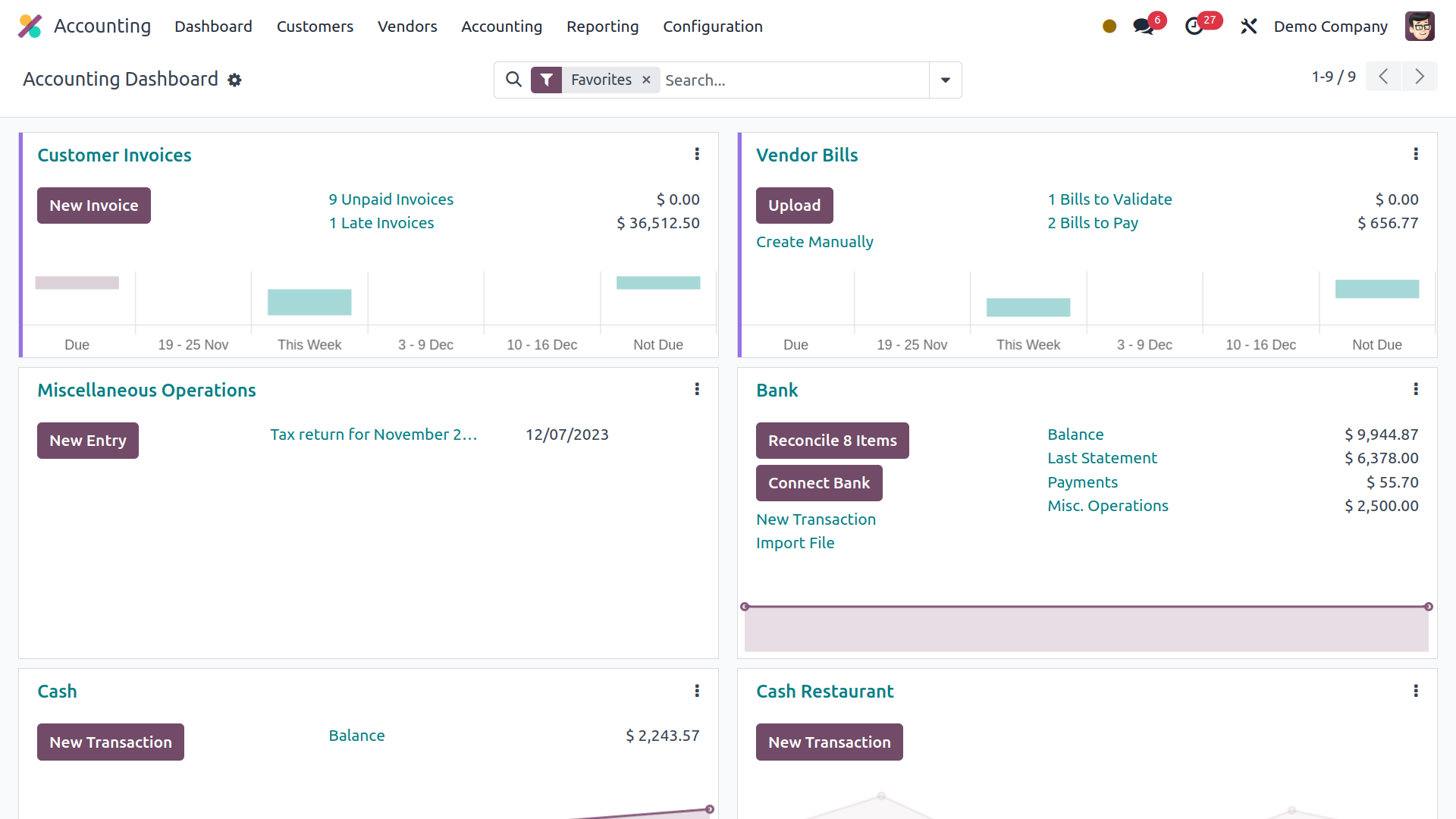 The dedicated dashboard of the accounting management module will provide you all the information.